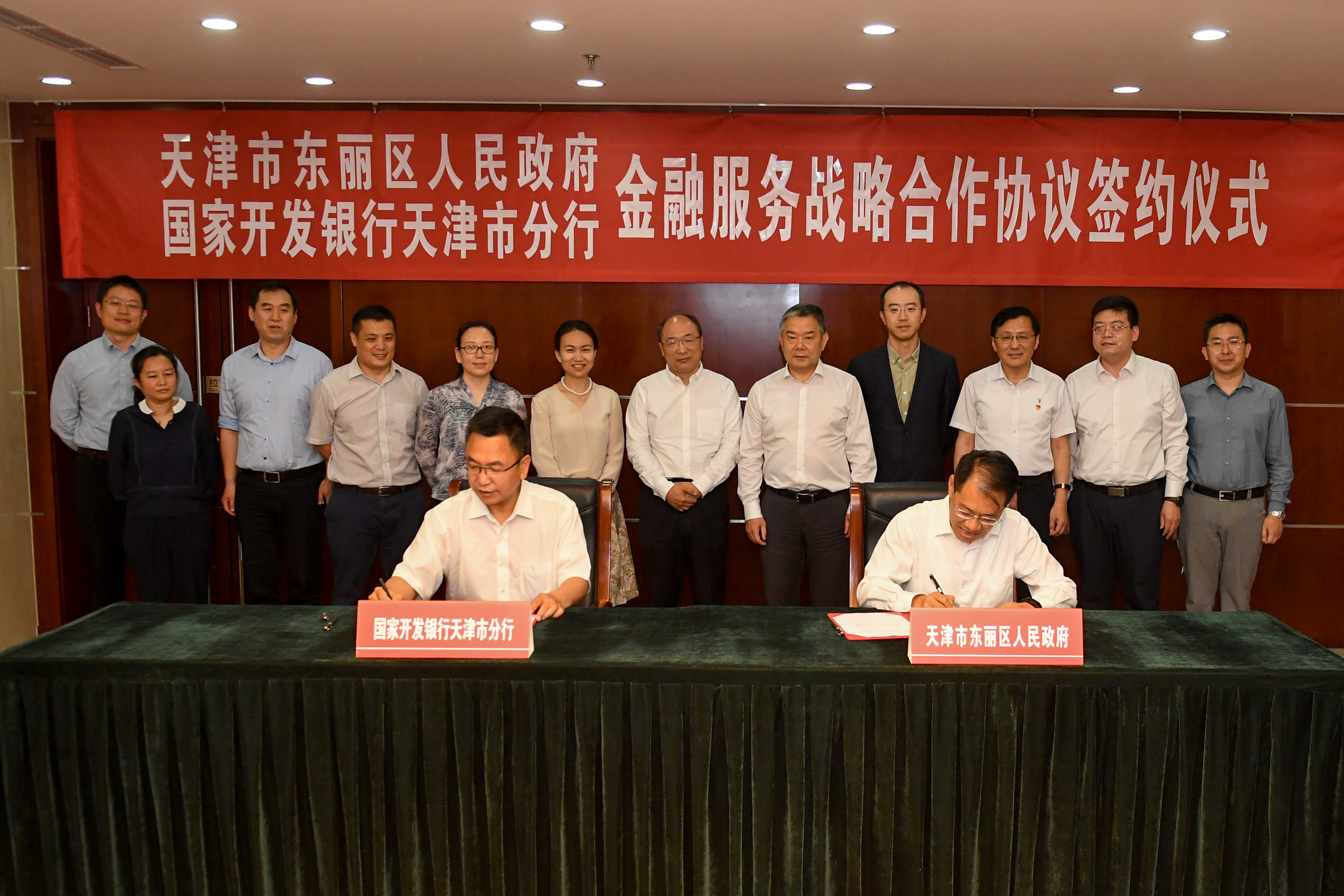 6月3日,东丽区政府与国家开发银行天津市分行签署金融服务战略合作协议。市政府副秘书长朱峰,国家开发银行天津市分行行长武靖人,区委书记夏新,区委副书记、区长谢元出席签约仪式。