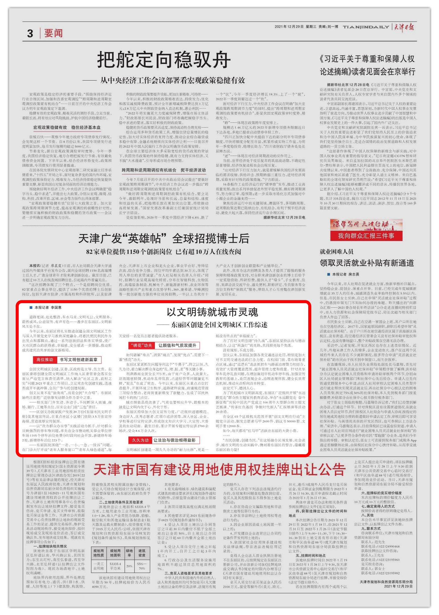 12月29日,《天津日报》在第3版刊登了《以文明铸就城市灵魂——东丽区创建全国文明城区工作综述》一文,报道了东丽区扎实推进创建全国文明城区工作与深入开展党史学习教育深度融合,通过一系列创新招法和务实举措,推动形成共建共治共享的创文新格局。全文如下。