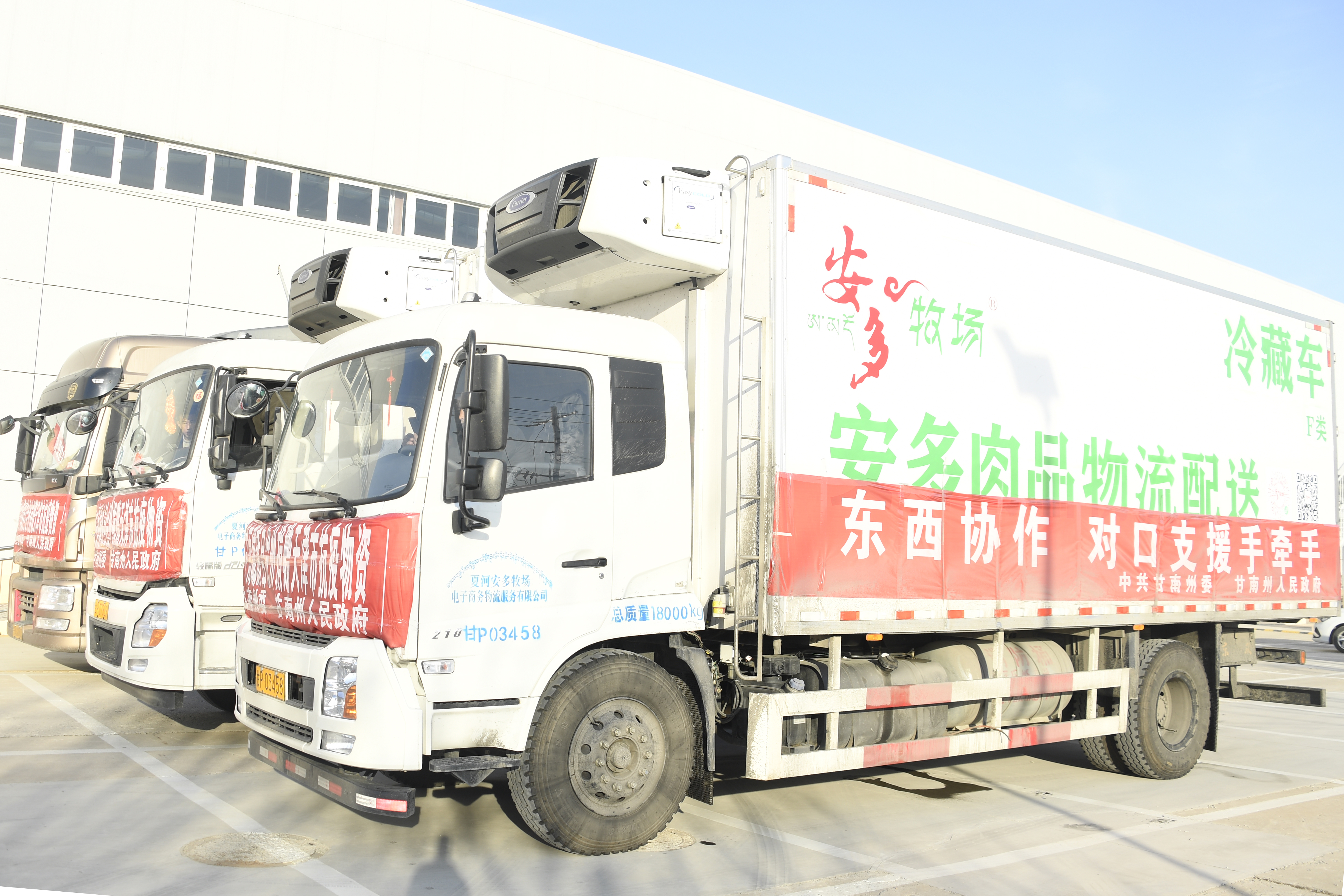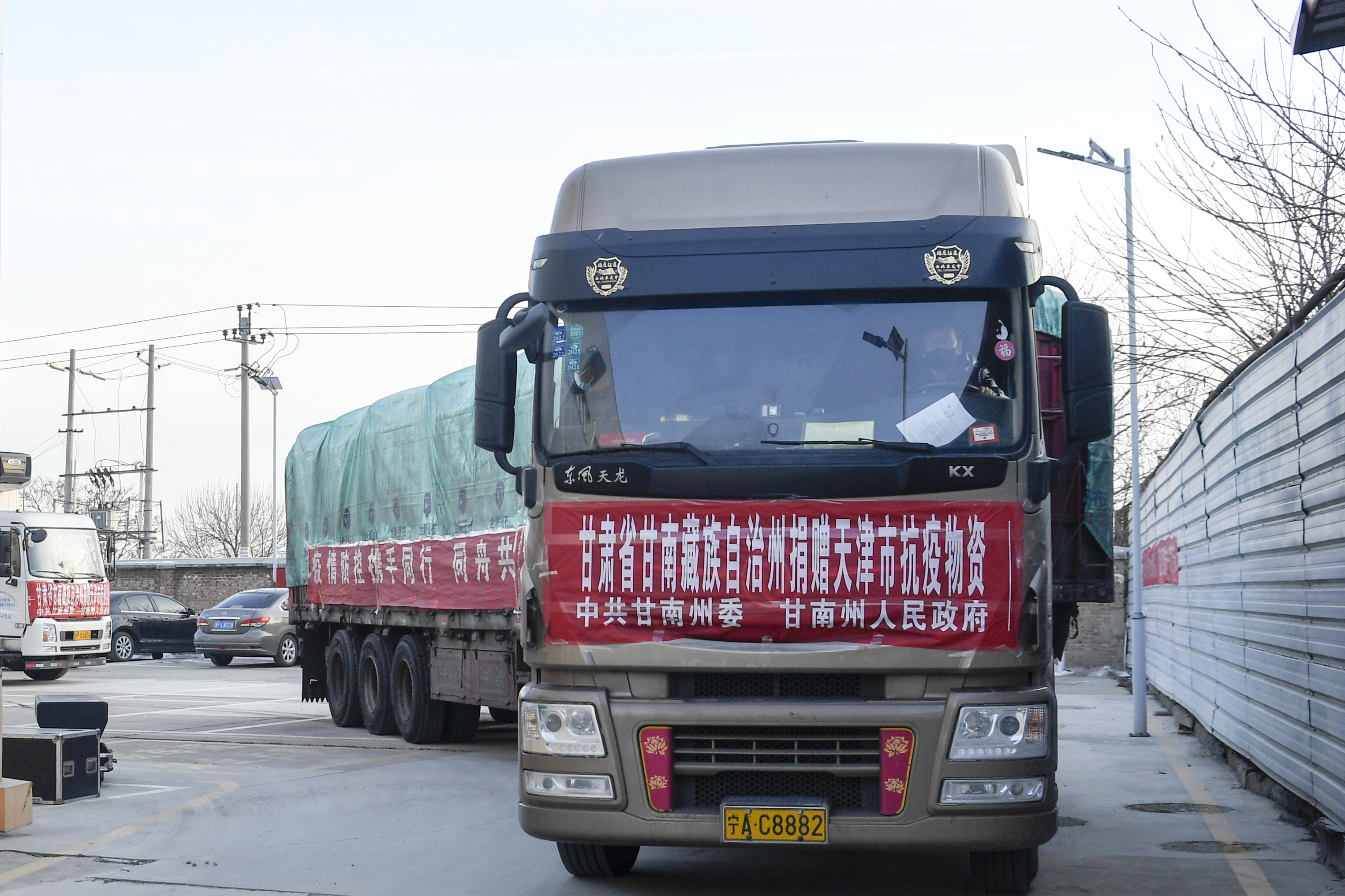 1月28日,历经28个小时、1700多公里的路程,满载各种物资的3辆大型货车从甘南藏族自治州抵达天津,支援天津抗击疫情。