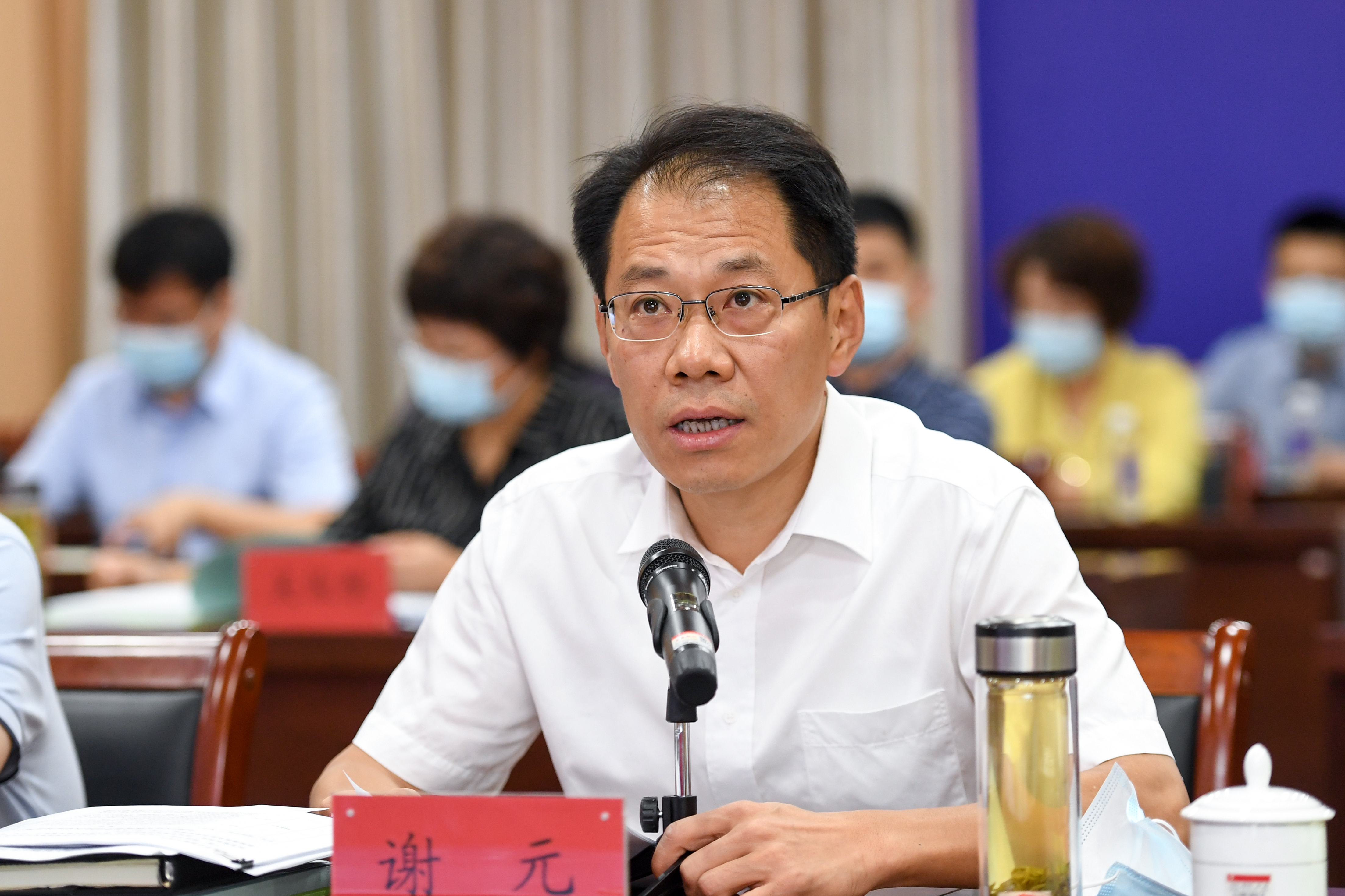 区委书记谢元主持会议并讲话,区委副书记、区长贾堤出席并讲话。