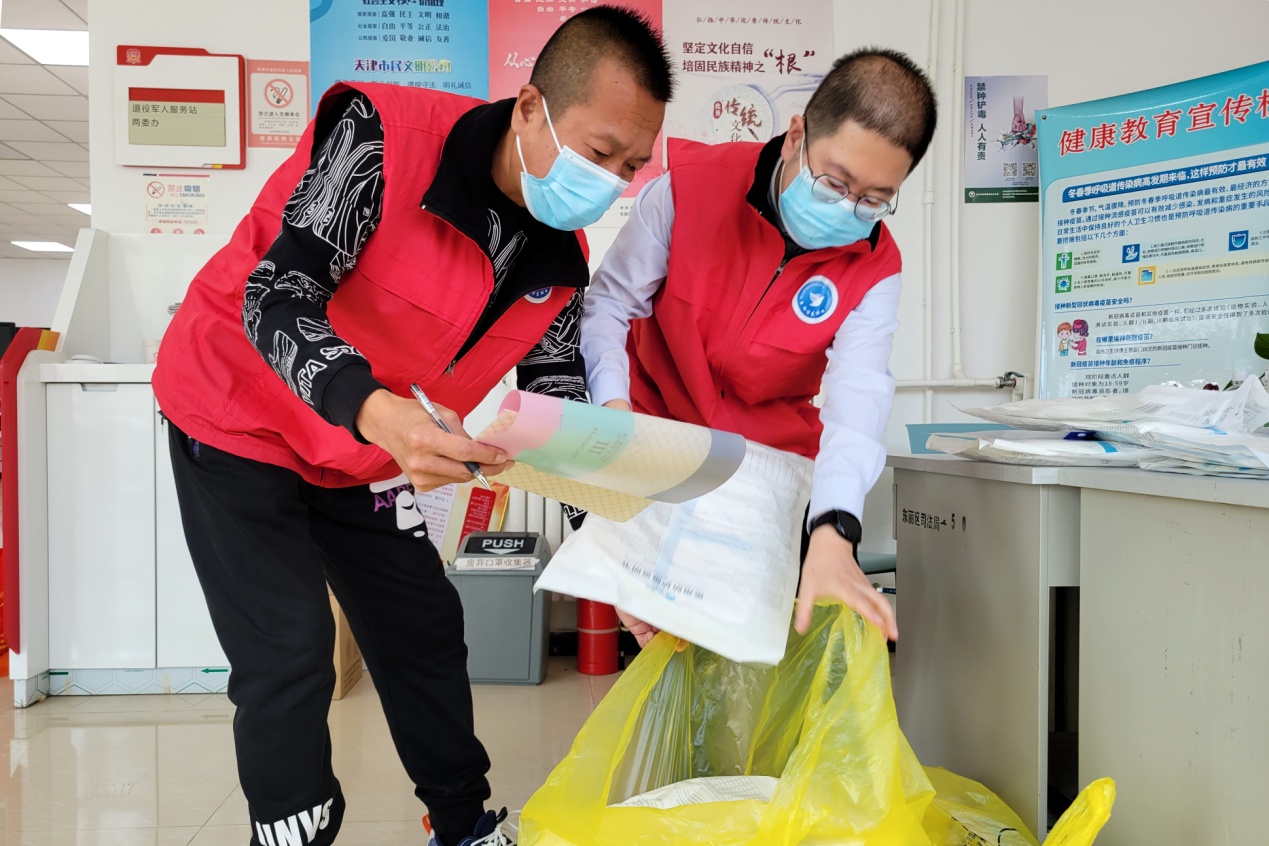在万新街道秋丽家园社区,远远就能看见来自市规划资源局东丽分局的下沉干部周波,他正在与社区保洁人员了解社区扫保工作中有没有需要解决协调的问题。自今年3月份下沉社区,周波已经成为社区的“老熟人”,他服从社区安排,协助社区核实小区人员信息、承担核酸检测筛查等工作。