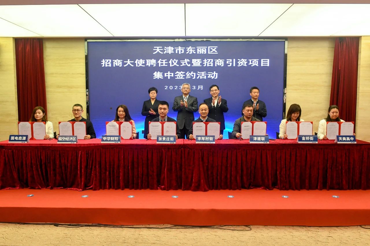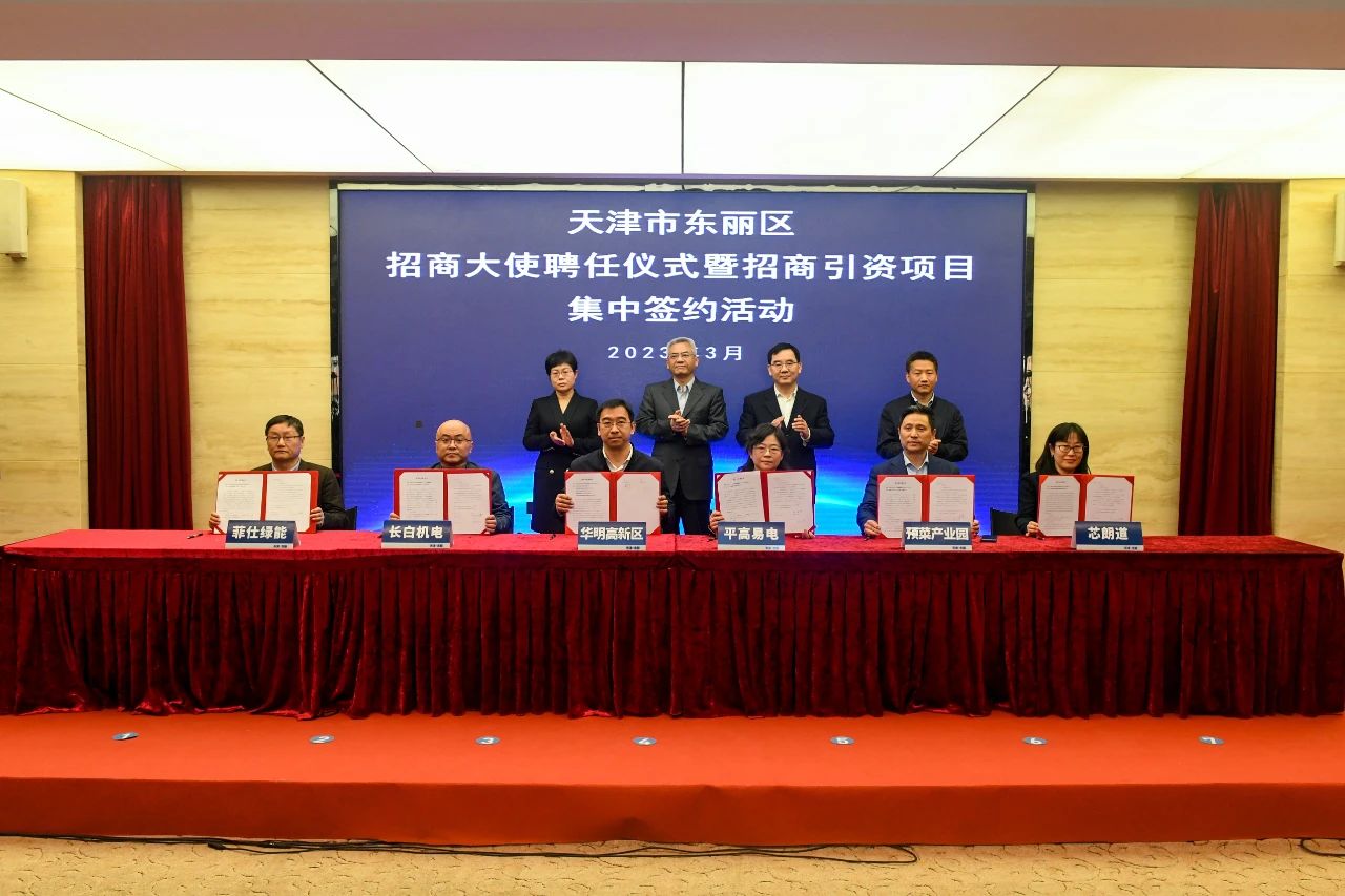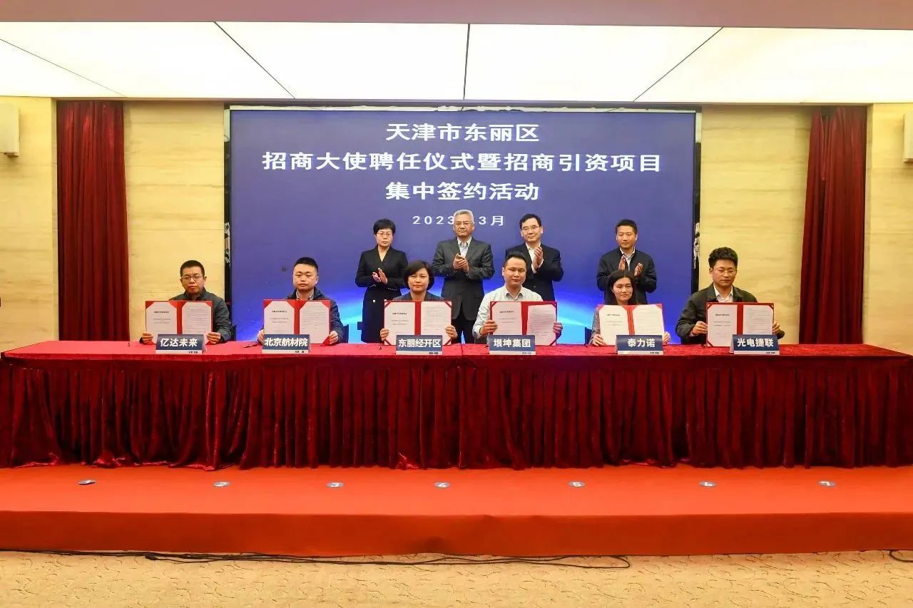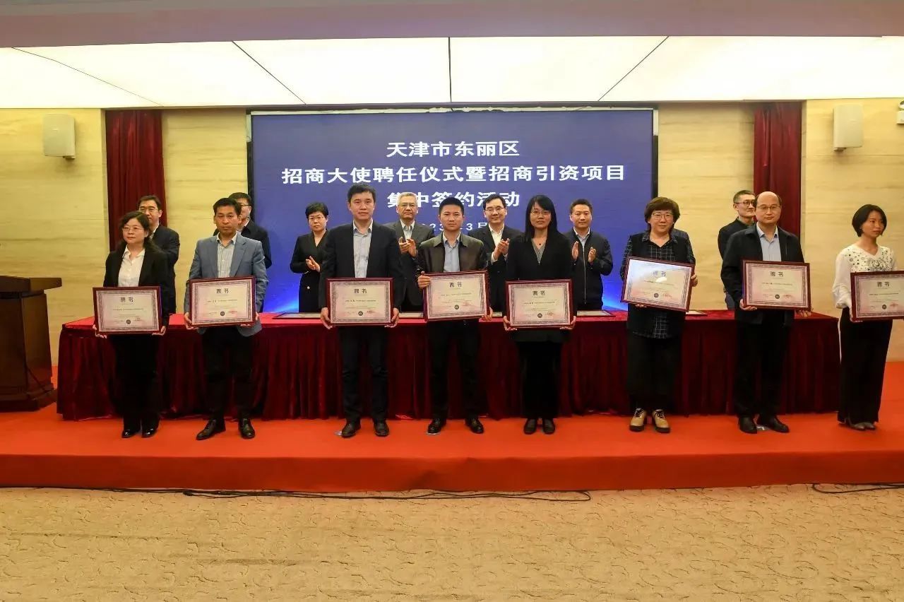 会议首先举行招商大使聘任及集中签约仪式,贾堤、李春、陈媛等与会领导及区相关单位负责同志分别为天津信鸿医疗科技、中车唐车轨道车辆、平高智能电气、爱思达航天科技等15名企业的负责人颁发东丽区招商大使聘书。随后,在与会领导的见证下,东丽经开区、华明高新区等7个街道园区分别与所落户的企业进行签约。此次集中签约的29个产业项目,协议总投资60亿元,涉及新能源、医疗器械、智能制造、高端装备制造、文化旅游等多个领域。中国汽车技术研究中心有限公司、高力国际产业及工业服务部北方区和天瞳威视电子科技、中科菲仕电气技术有限公司分别代表招商大使和签约企业发言。