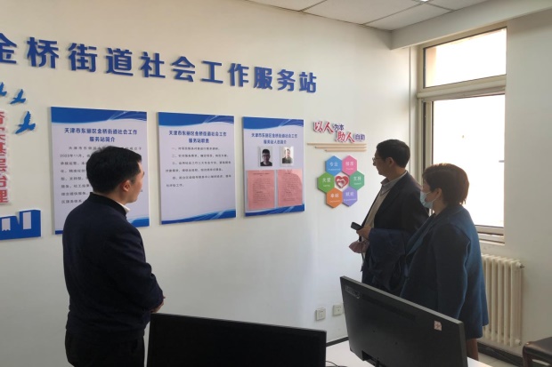 日前,中国社会工作学会秘书长邹学银一行到东丽区指导社工站工作,走访了金桥街道社工站,听取了“1+6+N”五社联动助力社区微治理项目的开展情况报告并进行座谈交流。市民政局副局长张清玲参加座谈会。