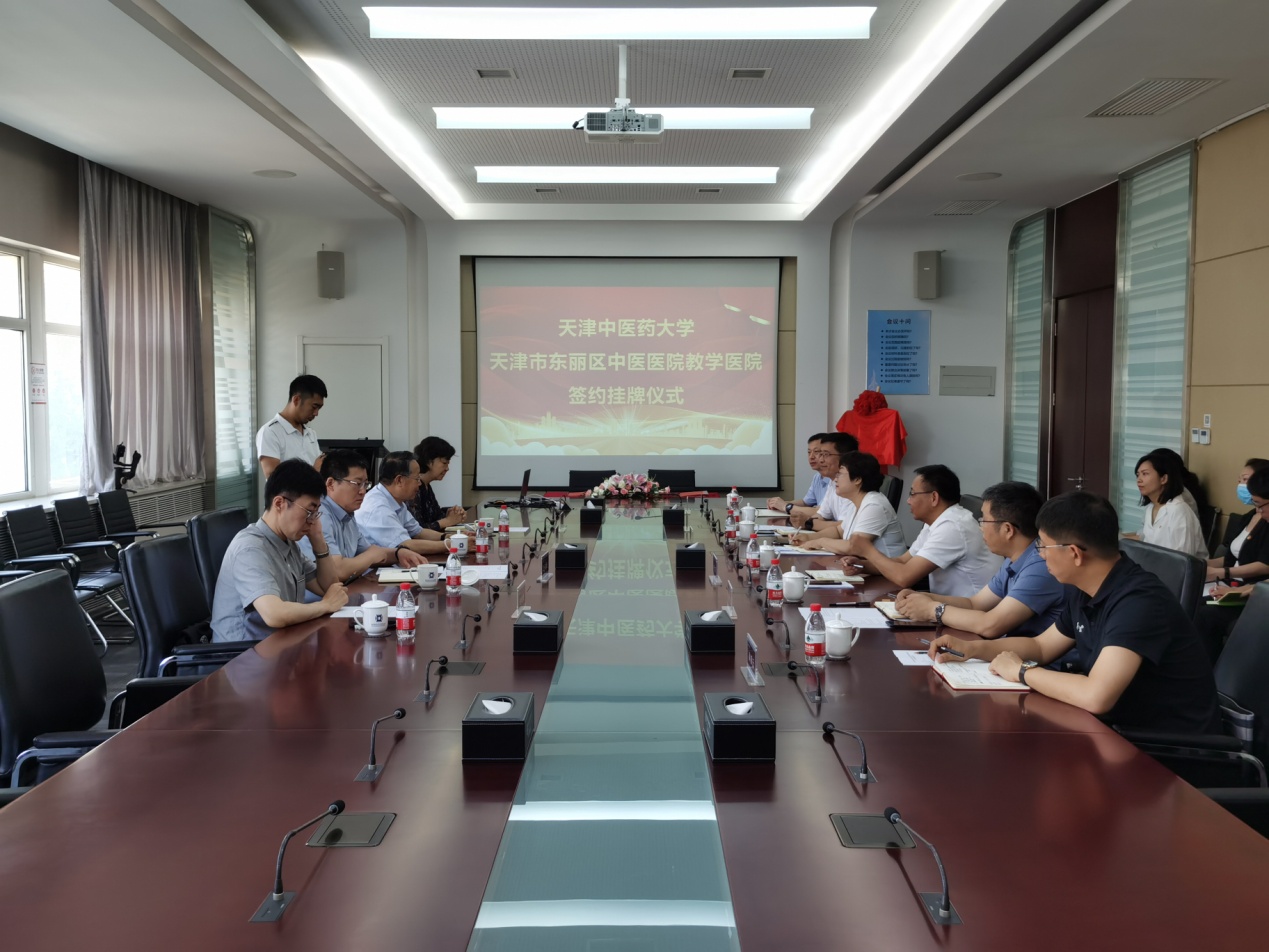 日前,天津中医药大学天津市东丽区中医医院教学医院签约挂牌仪式在东丽开发区科技金融大厦举行,副区长吴俊雅与天津中医药大学副校长共同为天津中医药大学天津市东丽区中医医院教学医院揭牌。