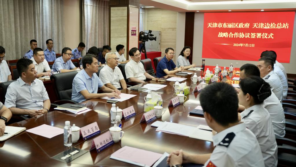 7月12日,区委书记贾堤,区委副书记、区长李春带队到天津出入境边防检查总站走访,与天津出入境边防检查总站党委书记、总站长王昌丰就进一步推进东丽区高水平对外开放和高质量发展进行座谈交流,并共同见证战略合作协议签署。区领导王洪府、周青参加。