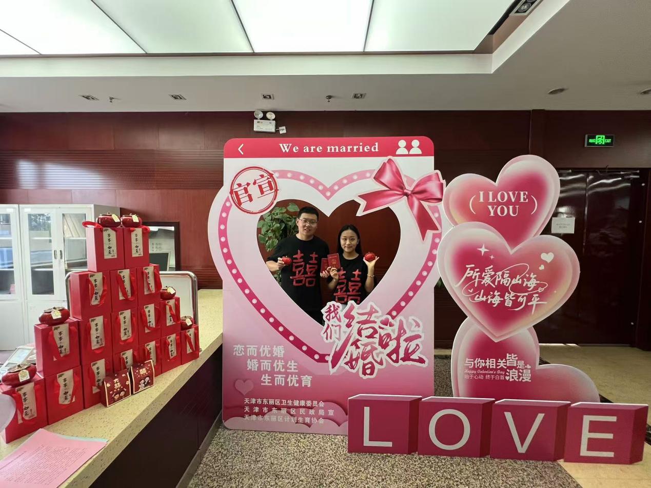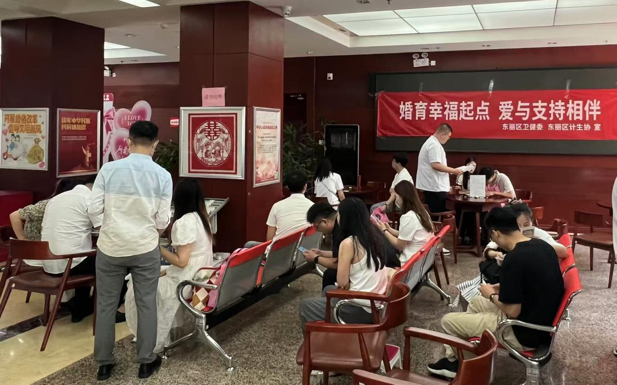 近日,区卫健委、区民政局、区计生协联合在东丽区婚姻登记中心打造新型婚育文化宣传阵地,以沉浸式宣传引导群众树立科学婚恋、生育及家庭观念。