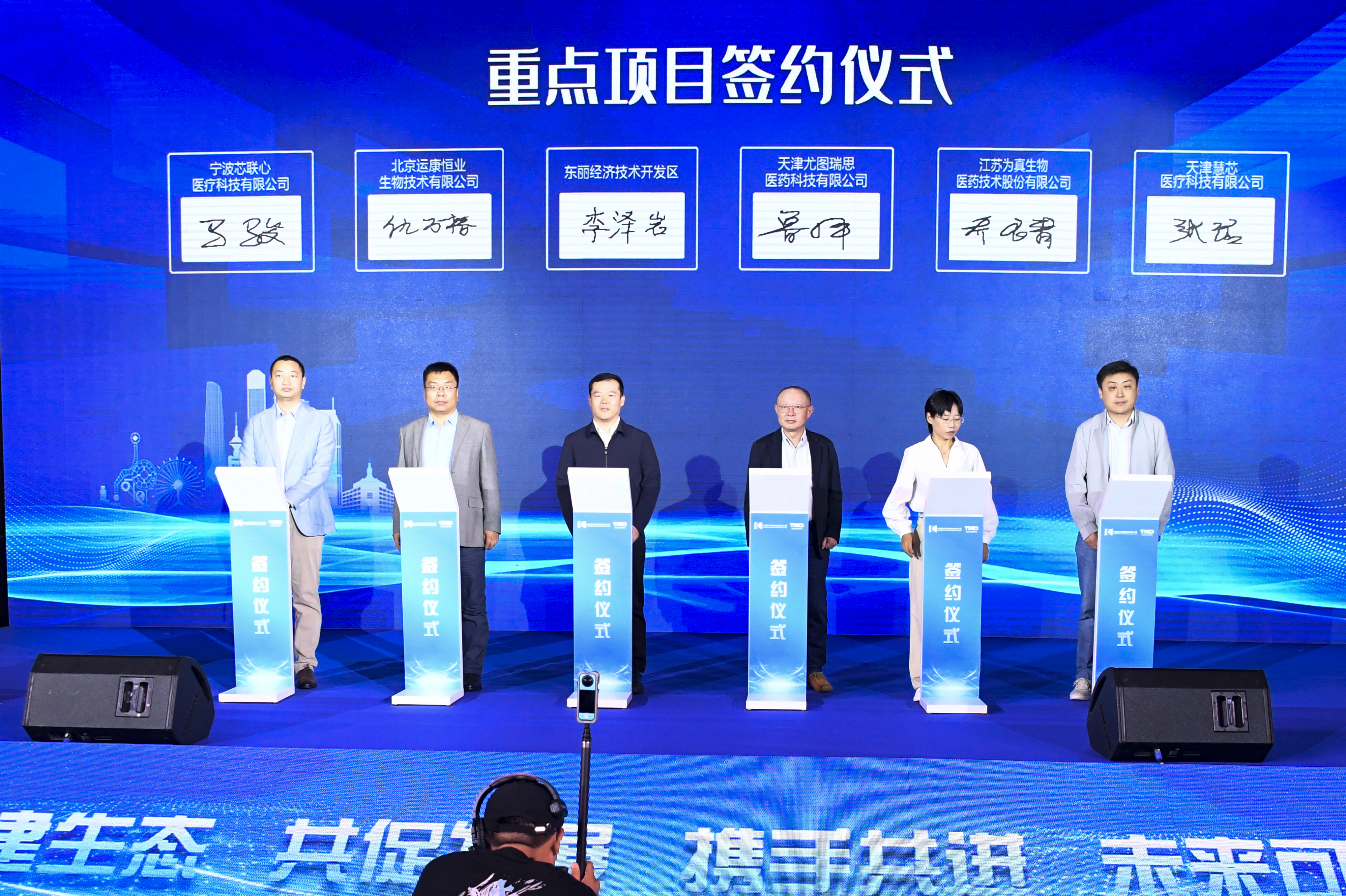 会上,与会领导共同上台启动第二届中国(天津)医疗器械创新生态大会暨第八届(2025)中国医疗器械创新创业大赛。宁波芯联心、慧芯医疗、为真生物等5家入驻高研院代表企业与东丽经开区现场签约。国科新智(天津)科技发展有限公司、天津尤图瑞思医药科技有限公司、德恩伯亚医疗科技(天津)有限公司、天津美瑞特医疗科技有限公司、左点(天津)科技有限公司分别发布创新产品。帝达经开公司负责同志人发布东丽经开区支持医疗器械产业发展十条措施。会前,与会领导和嘉宾们参观了五大平台和企业展廊。