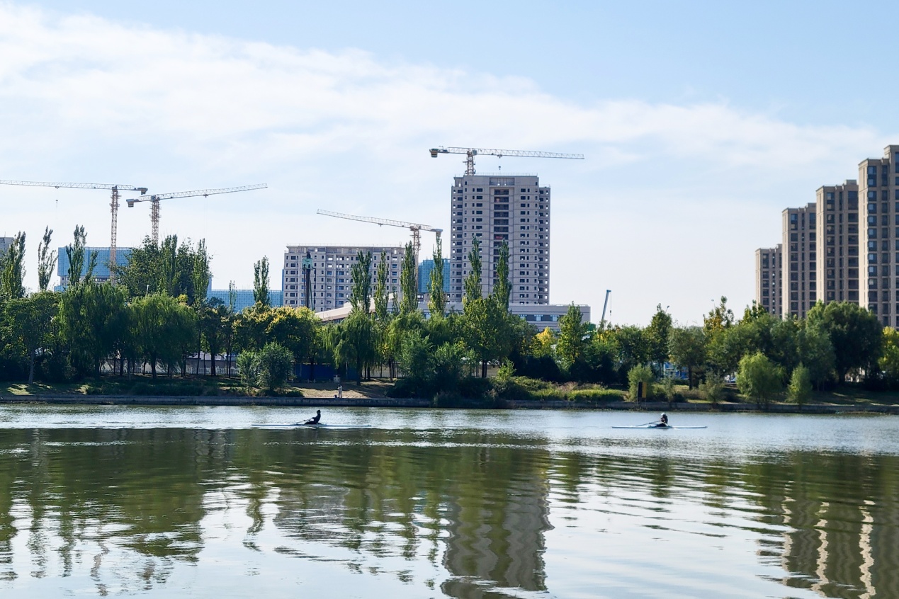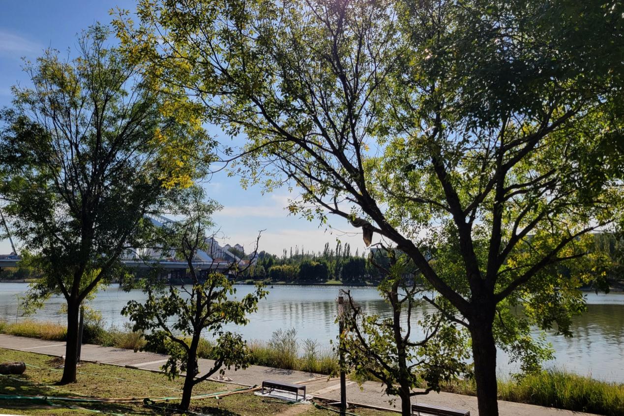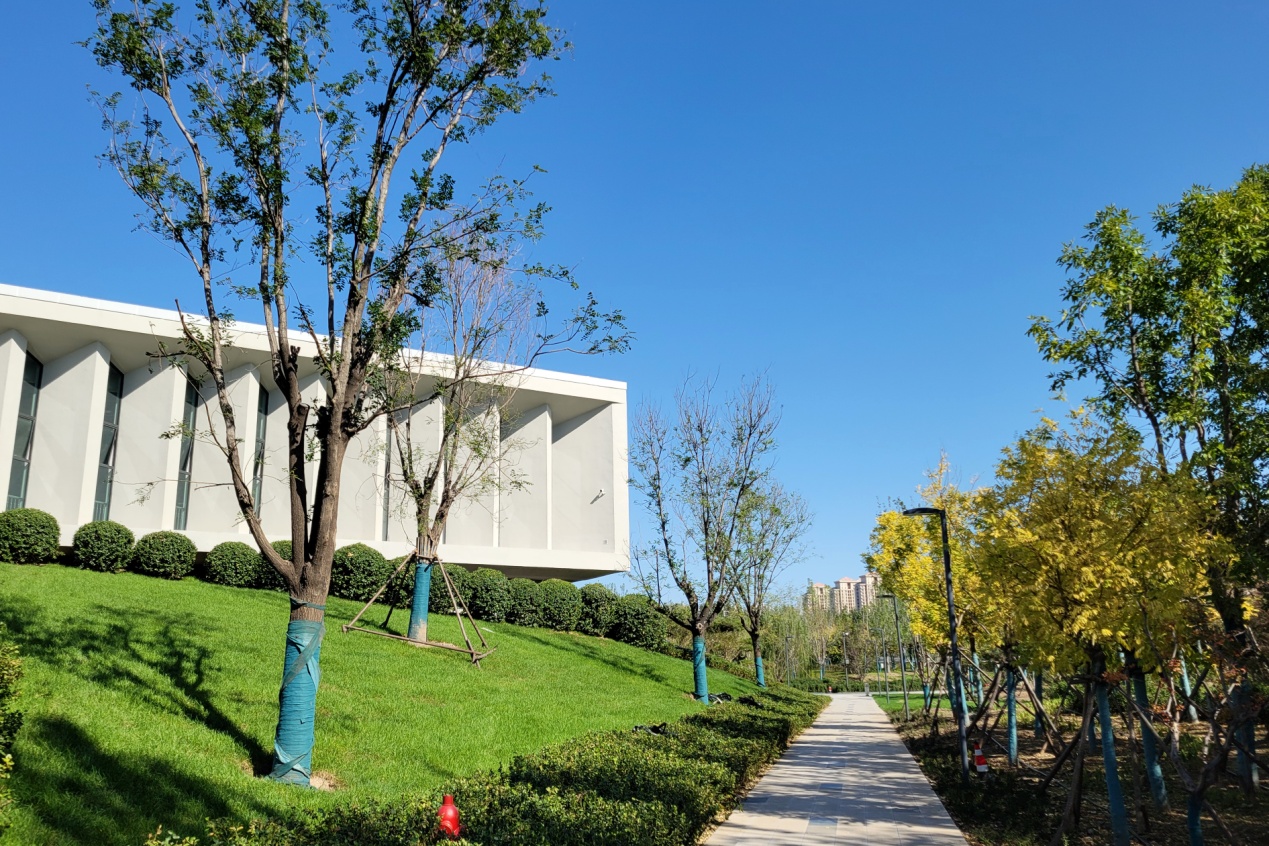 10月23日,霜降。霜降时节海河东丽段天朗气清、秋景如画,设计之都公园内,枝叶层林尽染尽显秋日元气。