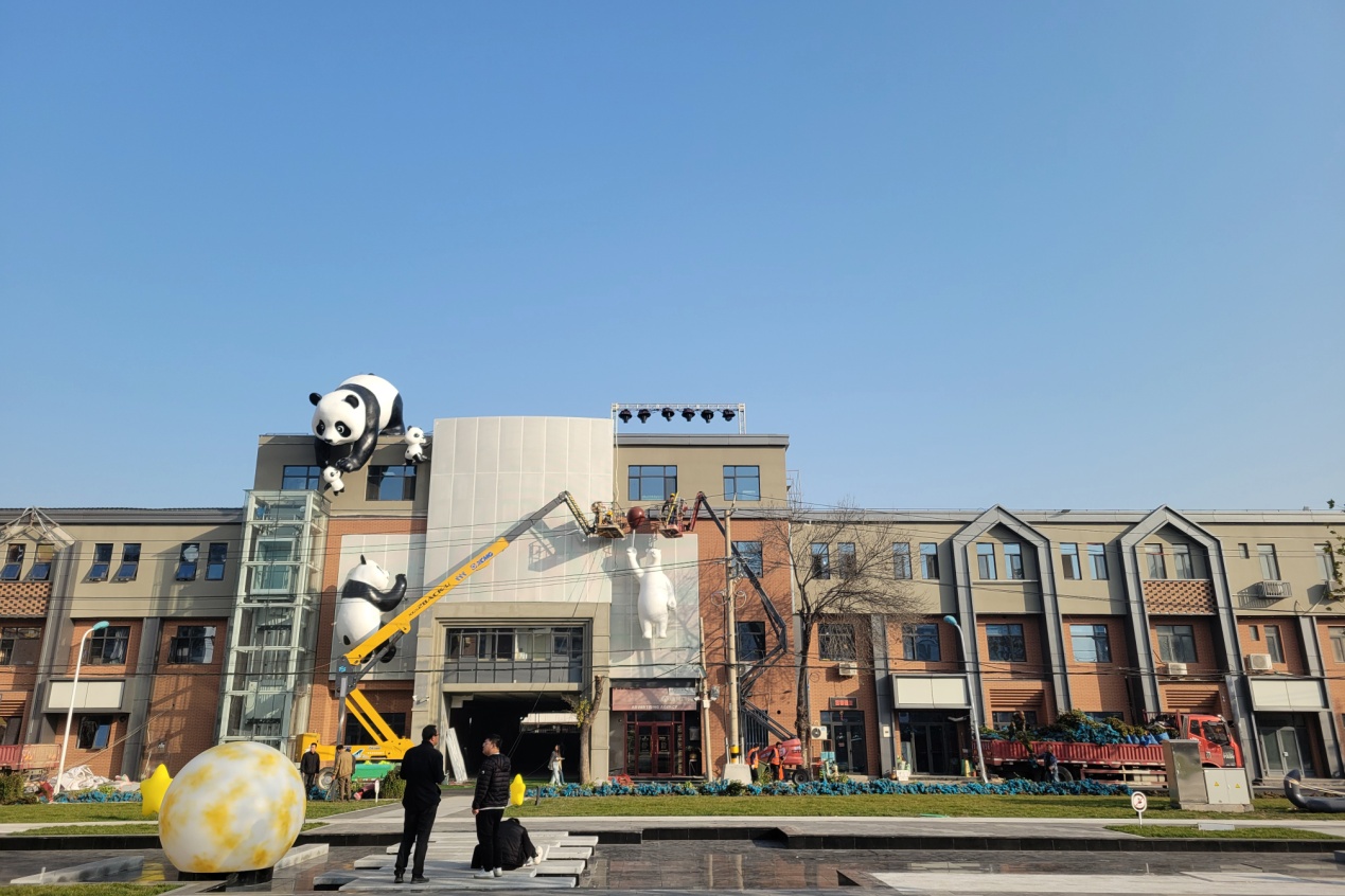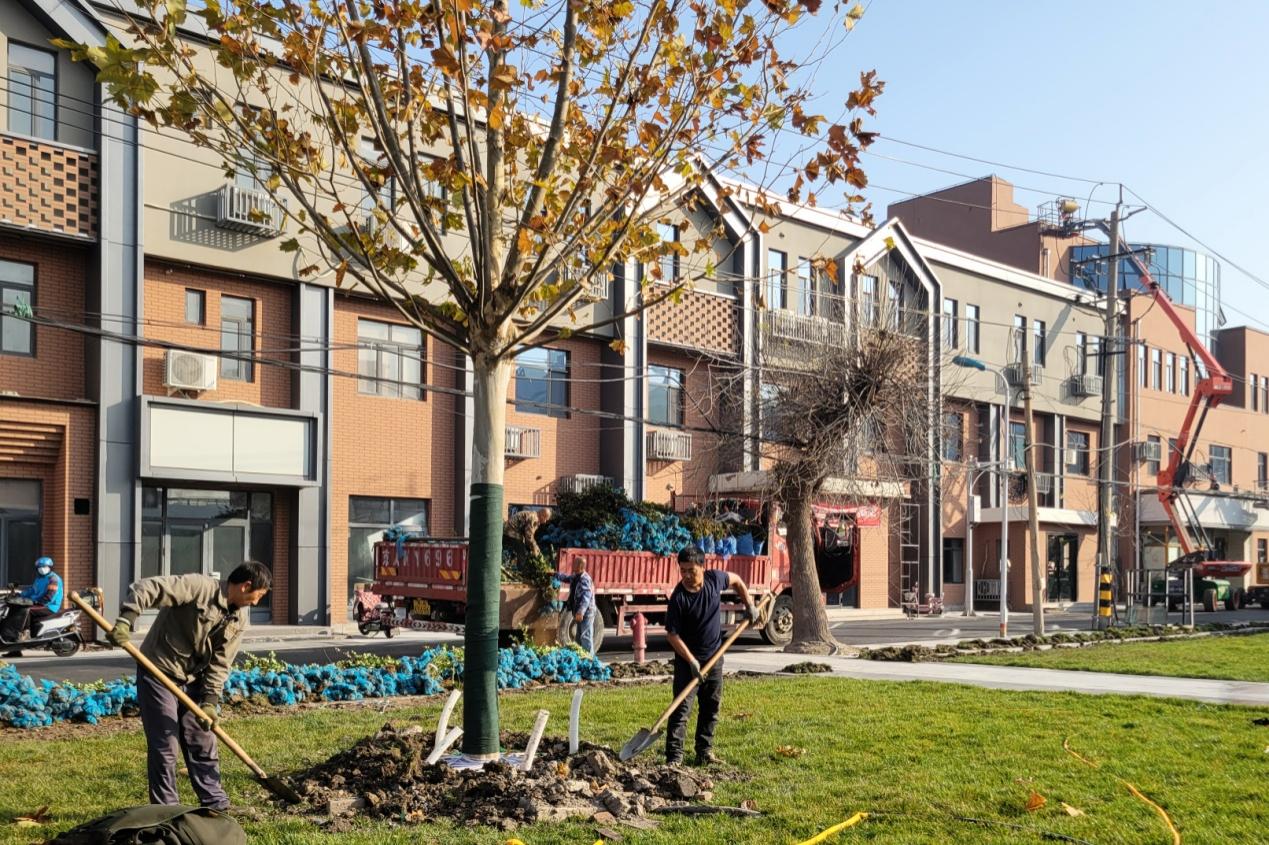 目前,广场土建、水电等基础工程已全部完工。施工团队正紧锣密鼓地进行美陈布景,打造错落有致的绿植景观,为广场增添自然生机。