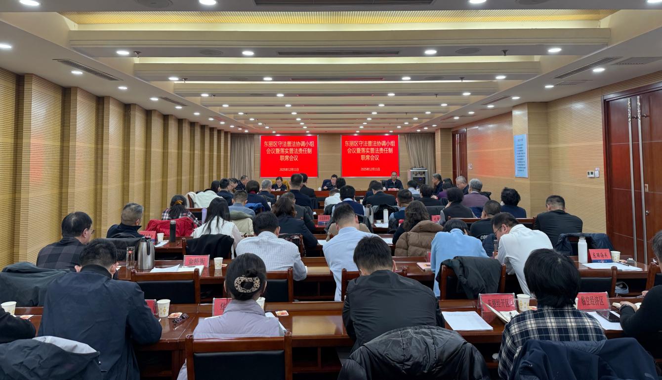 12月11日,东丽区召开2025年度守法普法协调小组会议暨落实普法责任制联席会议,总结“八五”普法工作,谋划“九五”普法规划。区委常委、区委宣传部部长、区守法普法协调小组组长秦陈出席会议并讲话。