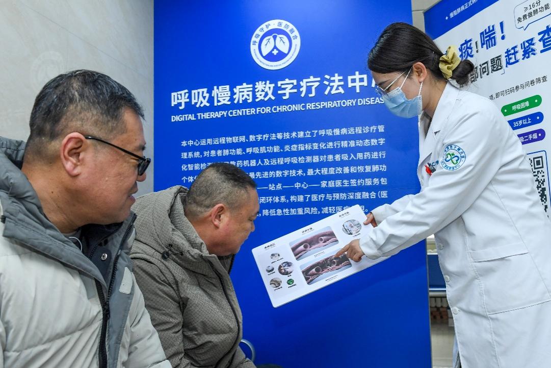 丰年村街道社区卫生服务中心以数字疗法为引擎,构建覆盖预防、筛查、诊断、治疗、随访、康复的全流程管理体系。中心通过远程诊疗系统动态监测患者肺功能、呼吸肌功能等关键指标,并借助教药机器人、远程呼吸检测器等智能设备,实现用药指导的标准化与定制化。