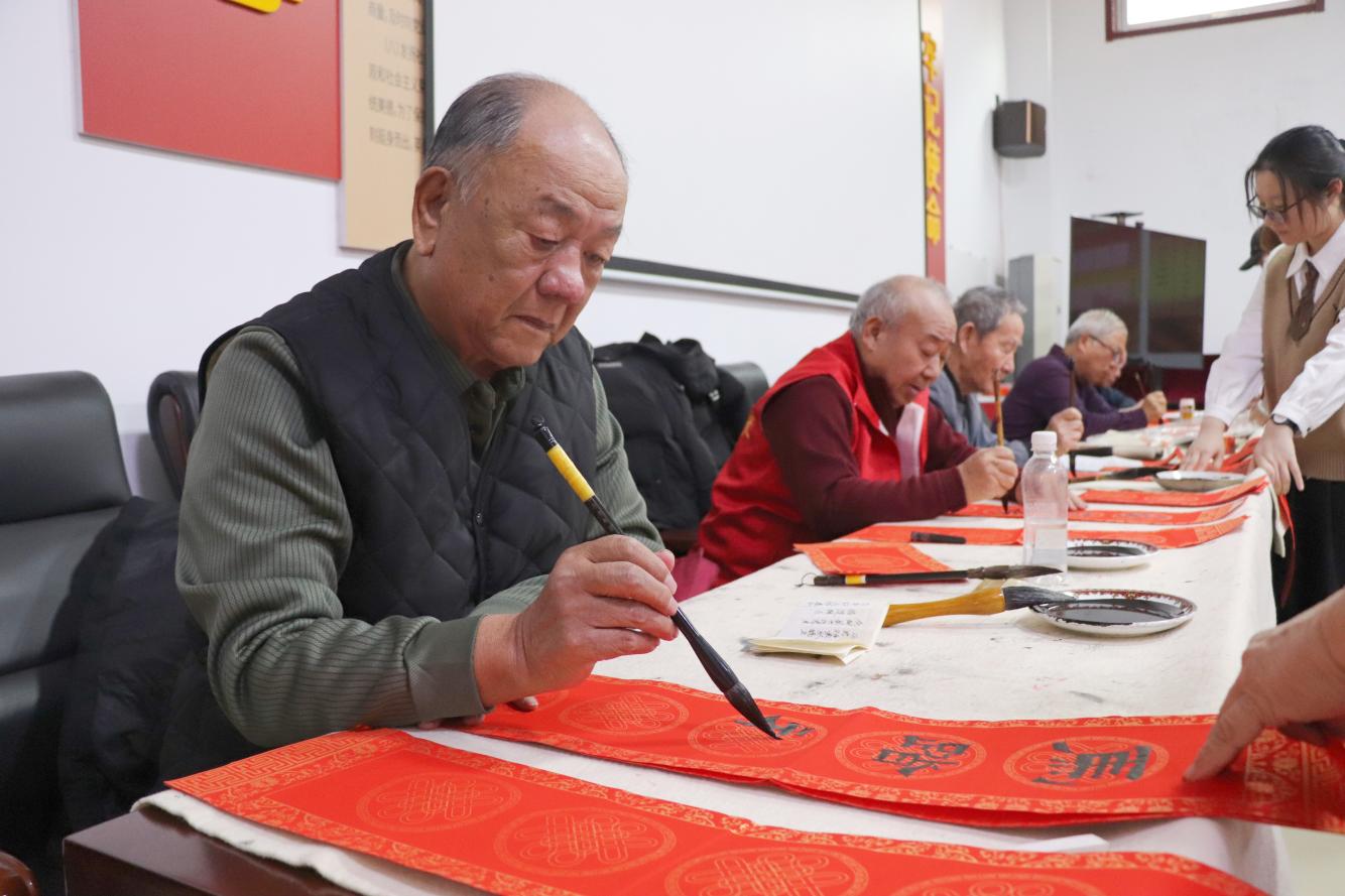 活动现场,红纸铺展,墨香四溢。书法爱好者们挥毫泼墨,