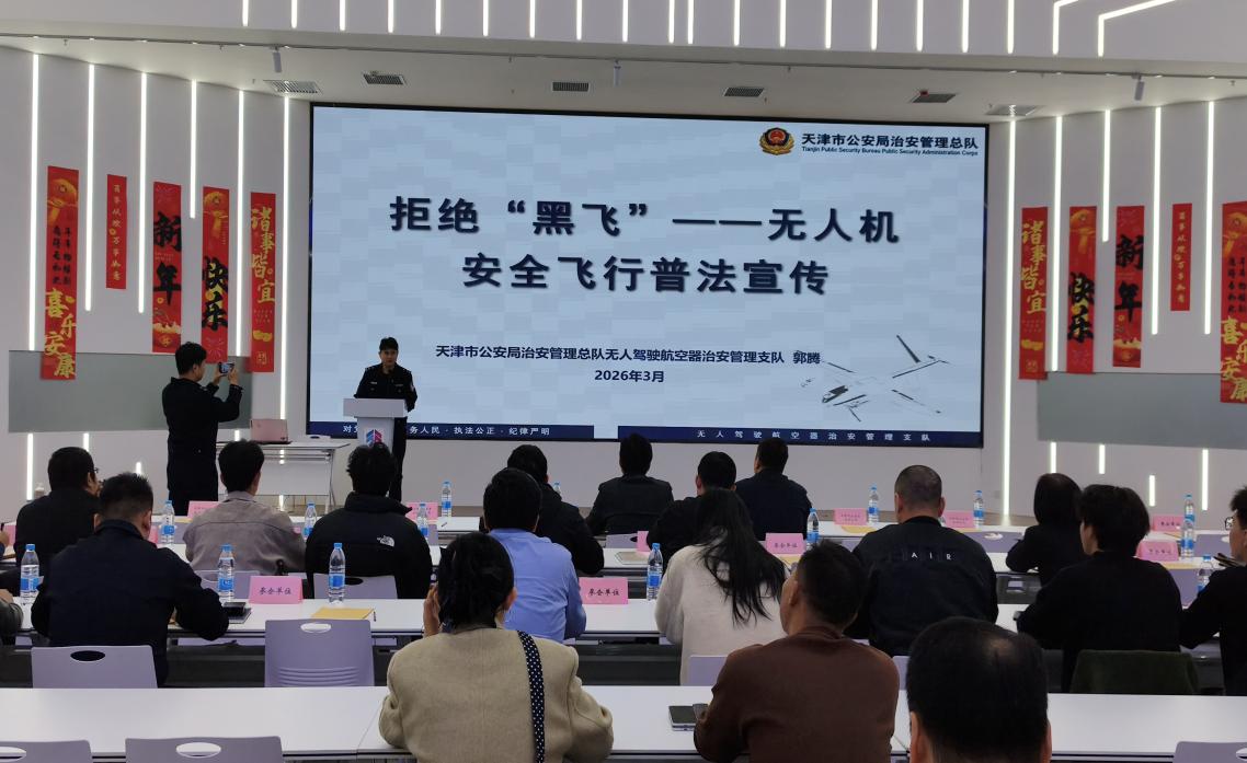 日前,“拒绝‘黑飞’——依法飞行”天津市无人机安全飞行普法专题讲座在天开东丽园举办,旨在从源头上遏制“黑飞”行为,提升行业法治素养,维护公共安全和低空秩序。
